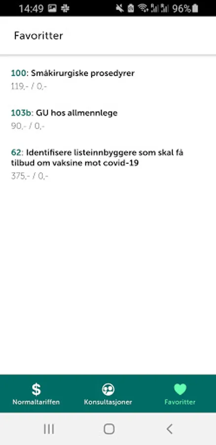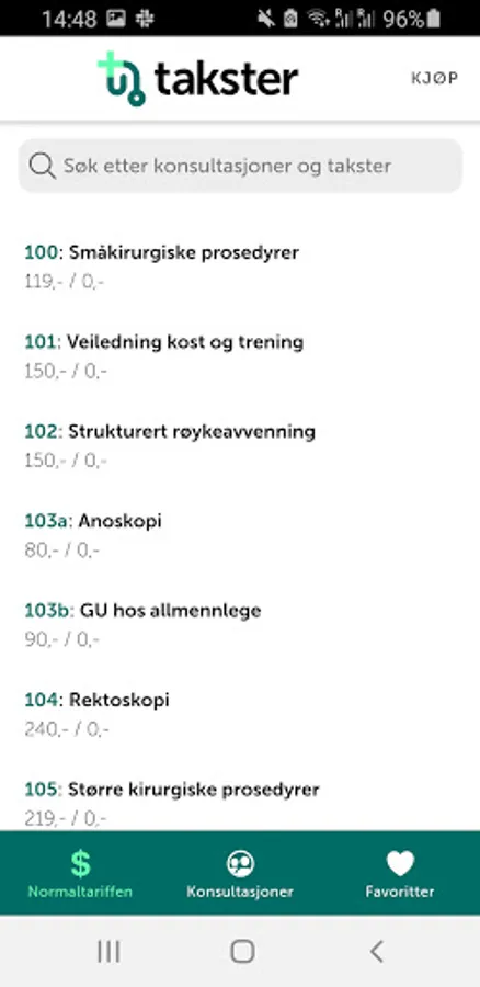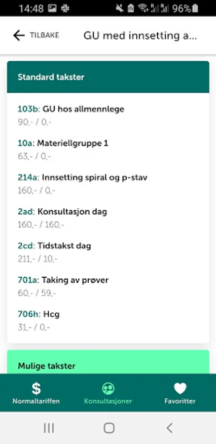 Tariffs give you a complete overview of which tariffs are relevant for different types of consultations. It tells you which rates are commonly used as well as which ones can sometimes be relevant and which ones are not allowed for a given type of consultation!