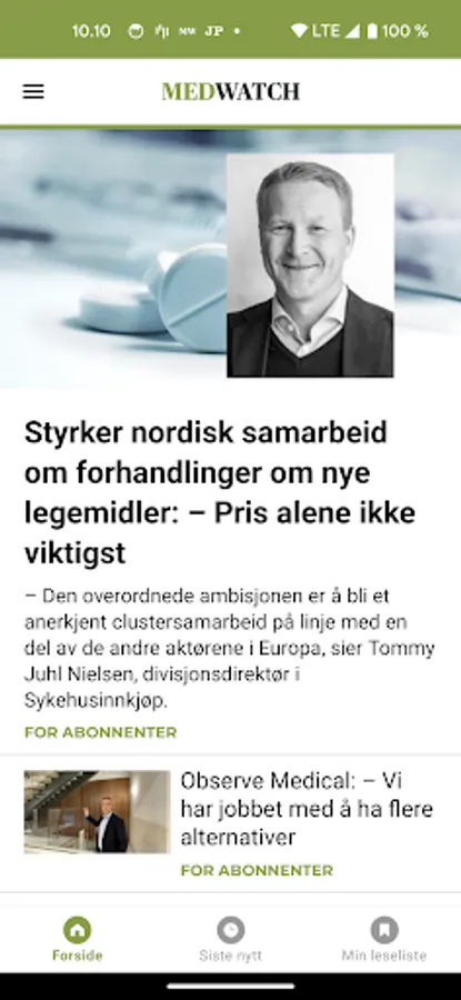 With the MedWatch app, you get easy access to independent and critical journalism about and for the Norwegian health industry and the health industry. MedWatch is the news paper about pharmaceuticals and biotechnology, e-health, health technology, medical equipment, framework conditions and regulation - and not least - the people in the industry. We give you news about life science, success and failure, strategies, job changes, results, drug development, ambitions, management and recruitment, and much more. In the app, you get an easy overview of all relevant news in the industry.