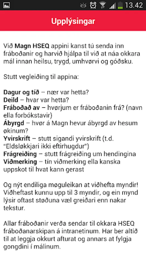 Magn HSEQ is P/F Magn's app for collecting reports regarding health, safety, environment or quality from our employees. One will need username and password to be able to use the app, but everyone is welcome to install it to have a look at the open pages.