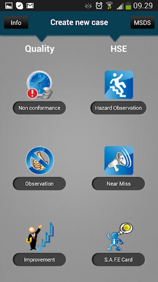 You may report all quality nonconformance, observations and improvement proposals and all HSE hazard observations, near misses and S.A.F.E Cards in an easy manner. In addition, you will have easy access to our material safety data sheets through the MSDS button on the “Choose report page”.