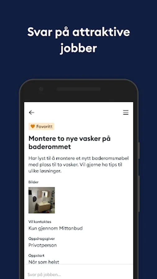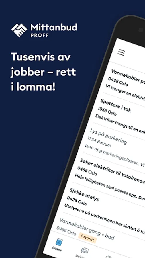 This is an app for companies that perform jobs on Mittanbud.no. If you want to post a job, we have a separate app for job registration, or you can visit our website at http://mittanbud.no.