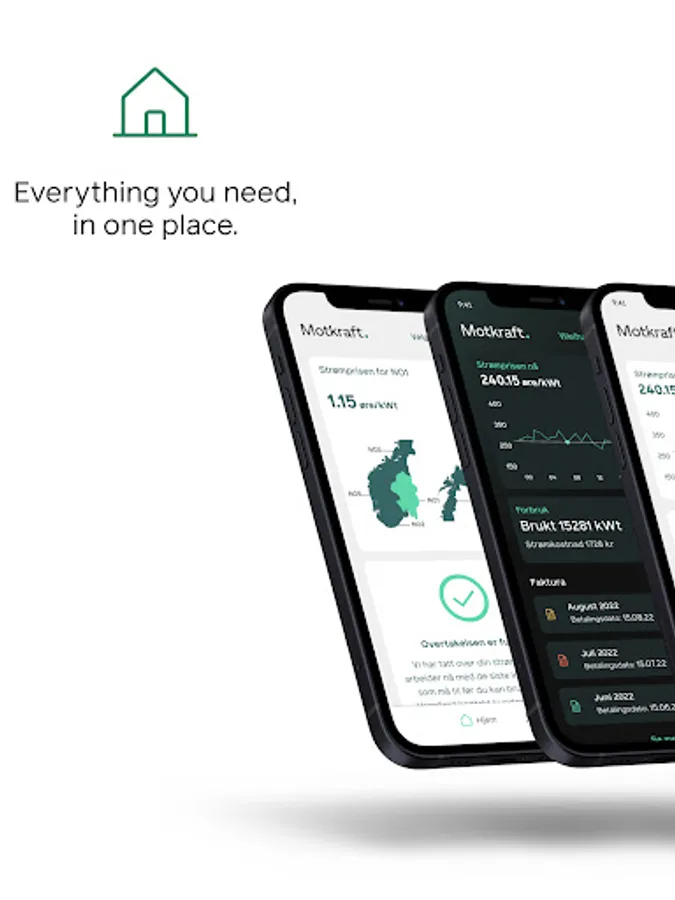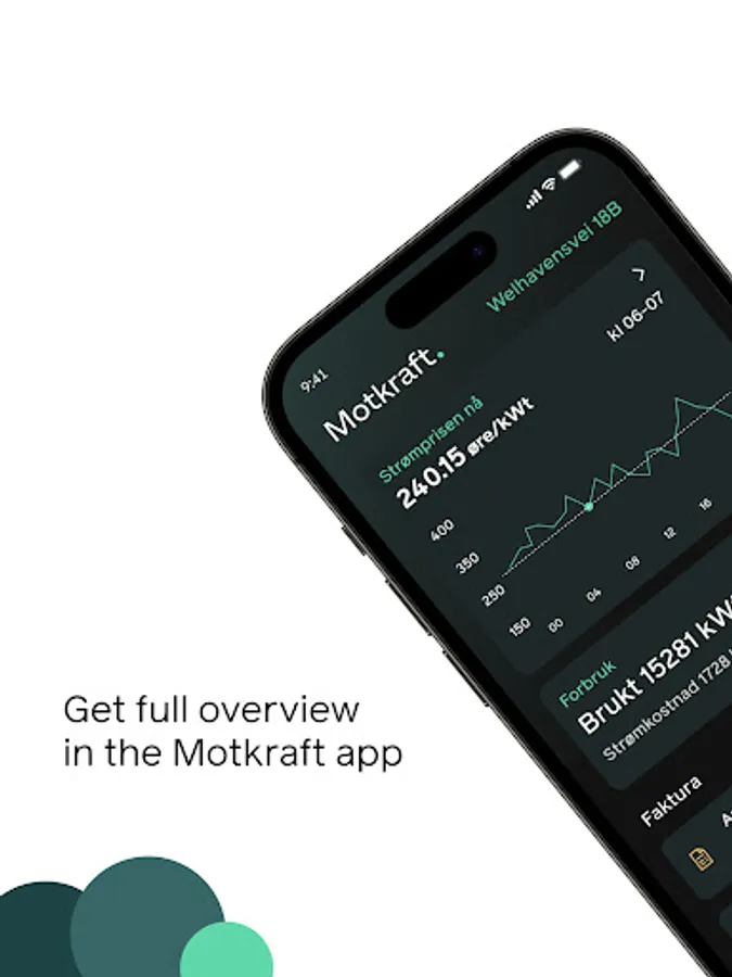 Welcome to Motkraft! We have designed our app to give you full control over your electricity consumption. With a simple click, you get a detailed overview and quick access to what you need.