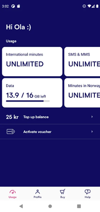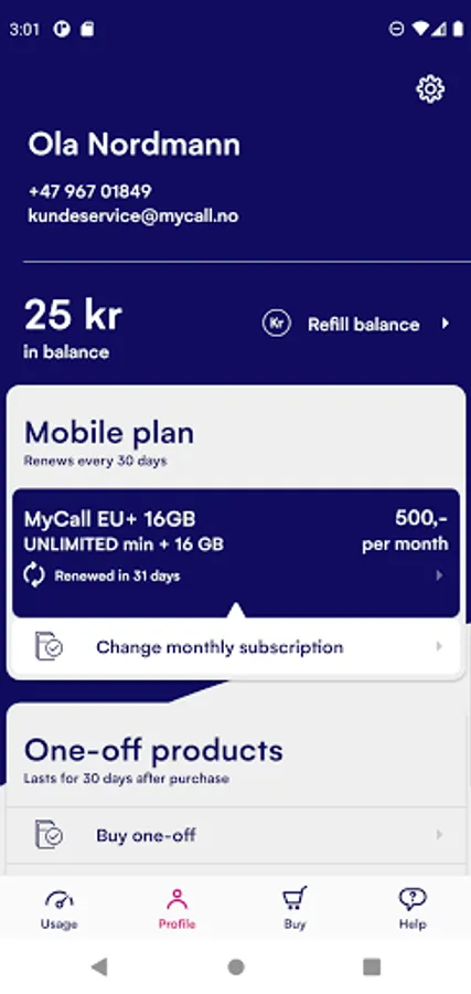 In our MyCall app you get a better control over your daily mobile usage! You can check your remaining balance, data, minutes, SMS and MMS at any time and you can top up more if you need!