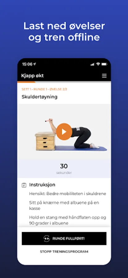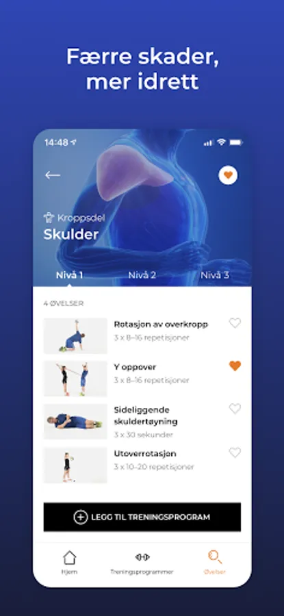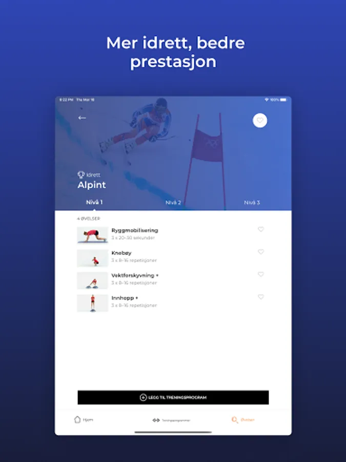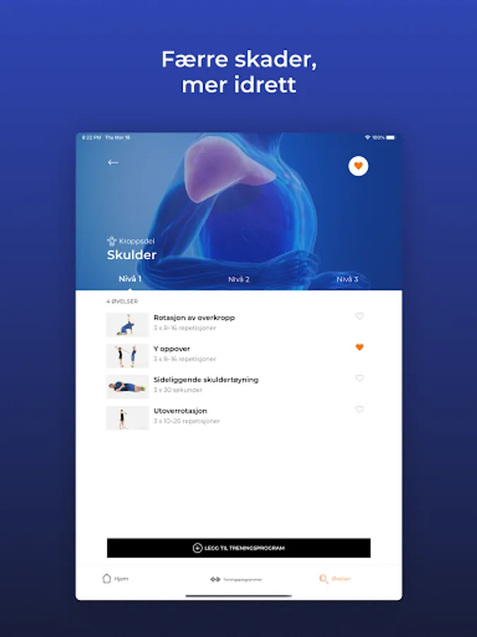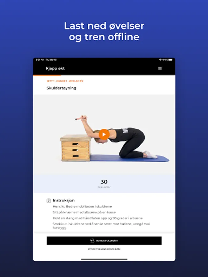 Injury-free and available in Norwegian. Injury-can be downloaded for both iOS and Android. The first time you select an exercise, you will have to download the video to your device. For this, we recommend that you use a wireless connection, to be sure to avoid external costs. Once you have downloaded the videos, these are stored on your device so you can take advantage of them wherever you are.