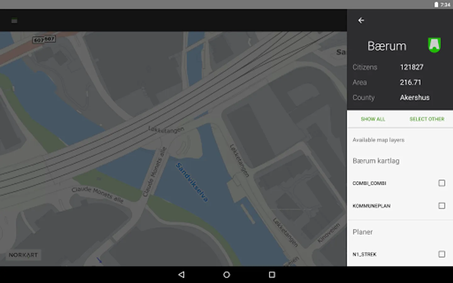 If you live in one of these forward-looking municipalities, you will also be given access to extra detailed maps for your municipality! For example, you can view zoning plans, property information and approved construction informasjon: