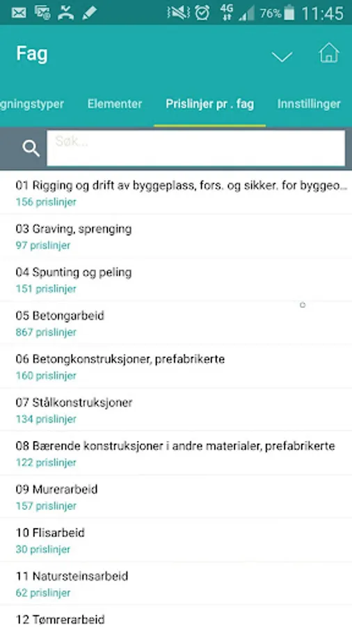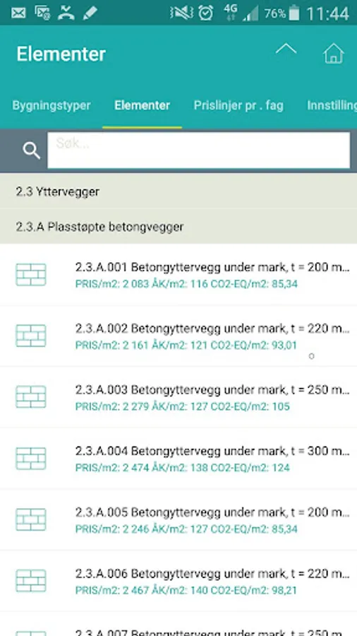 The Norwegian Price Book is an updated price database and contains broad and diverse pricing information regarding the cost of a construction project, as well as LCC and carbon footprint values. The Norwegian Price Book follows the continuous development of the construction industry. The book is published in paper form once a year, while web, app and software databases are published twice a year. The content consists of 1,700 pre-calculated items, over 3500 price lines, times, recipe quantities, life cycle costs and carbon footprint values, as well as experience prices per. square meters of BTA for ever-increasing number of building types in accordance with NS 3457.