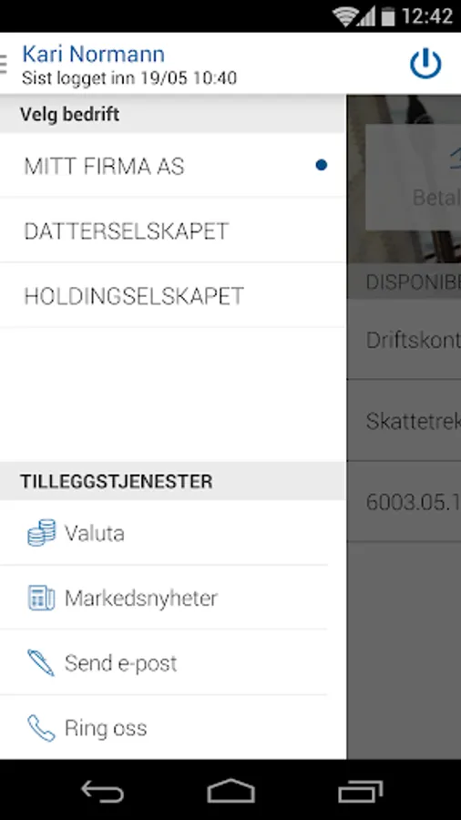 Mobile Banking Company is the app for your business. It provides a good overview of the company accounts. You can also enter and approve payments. Do you have access to multiple companies with customer relations at Nordea, all of these will also be available.