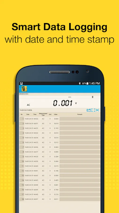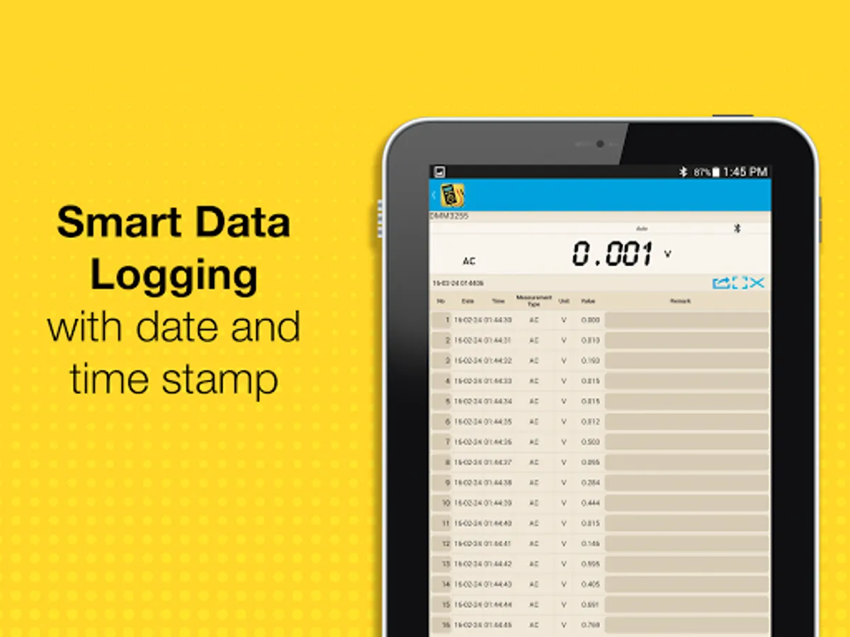 • Enables datalogging of measurements to your device (while in Bluetooth range), with user selectable measurement frequency and duration.