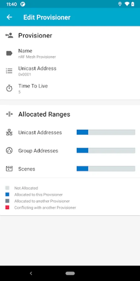 • Provisioning: Deployment of a new Node is as simple as a press of a button, this version supports Numeric OOB authentication and static authentication (With no user input on the latter). nRF Mesh will automatically handle the Unicast addressing for you, It's also possible override that by simply entering the desired addresses.