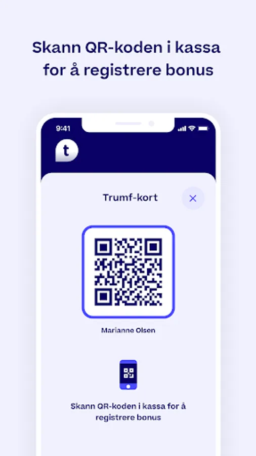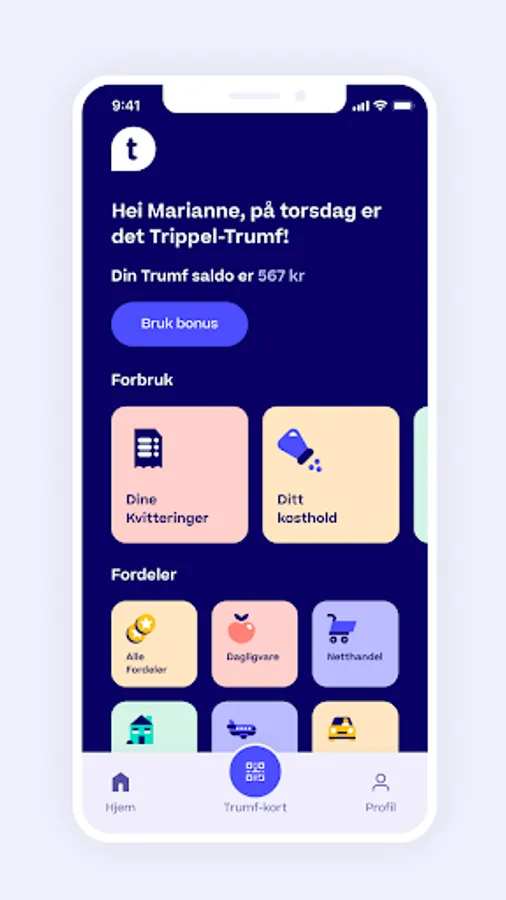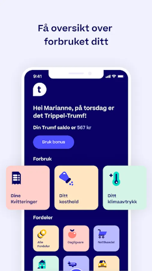 Trumf is present where you are and gives you money back on everything you need in everyday life! Trump is for everyone, and it's completely free to become a member! In the app, you can monitor your Trumf balance, use your saved Trumf bonus when and how you want, and gain insight into your diet and climate footprint.