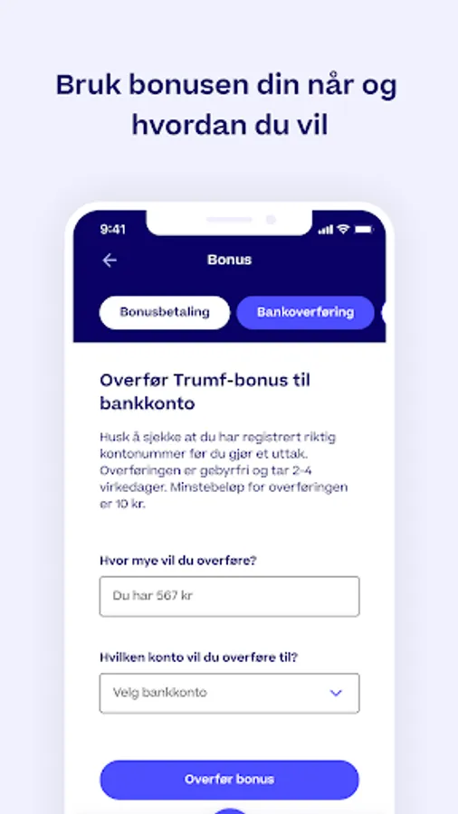 • Transfer Trumf bonus to a bank account, SAS EuroBonus or Nordic Choice Hotels