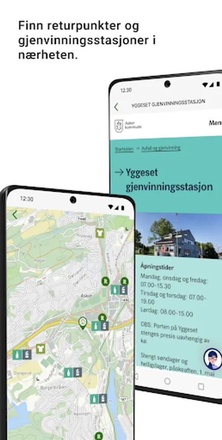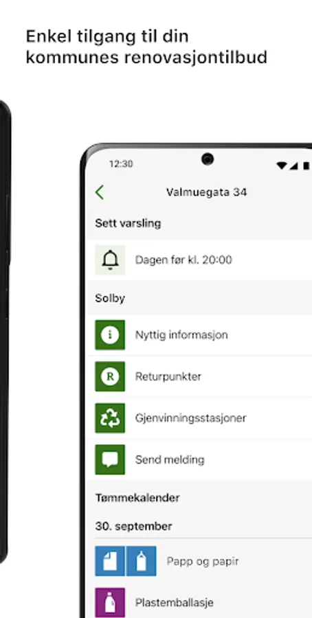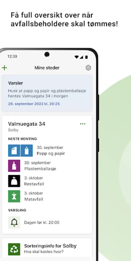 The app MinRenovasjon gives you an overview of when your waste is collected and an option to get push notifications so that you remember to get the waste containers ready. The app also provides information about waste sorting and recycling stations in your municipality.