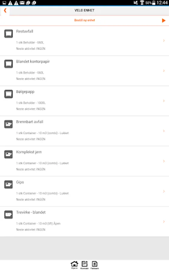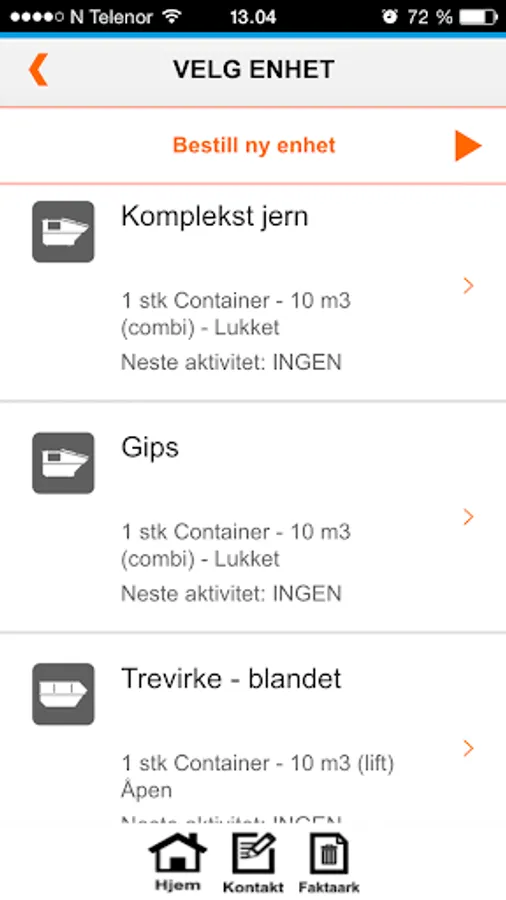 With this application, customers of Norwegian Recycling easily book emptying, release or collection of containers and containers. In addition, you get access to fact sheets that describe and document the different types of goods, services and equipment.