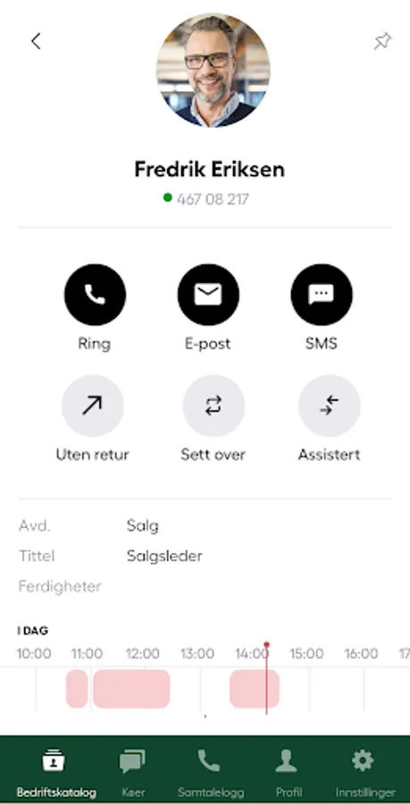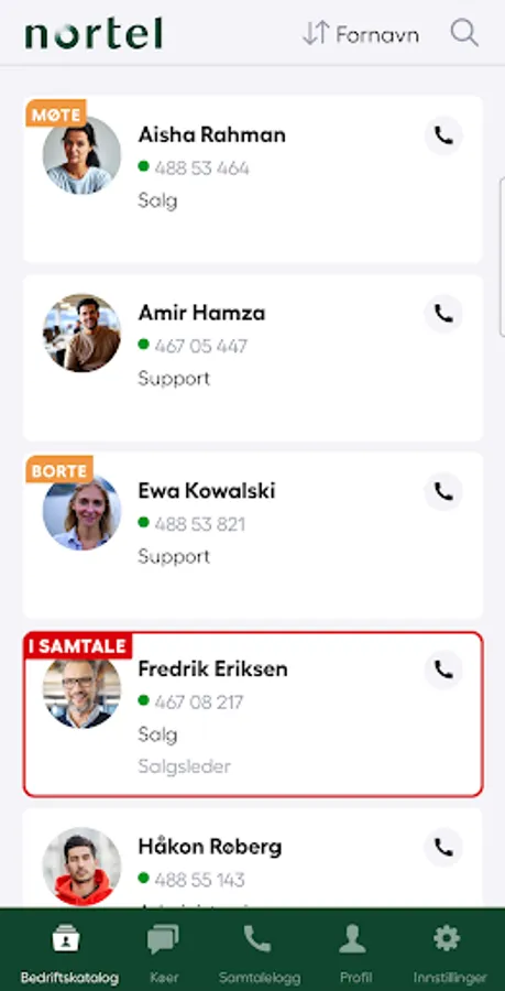 With the app for Nortel Bedriftsnett (Business Communication), you carry the switchboard in your pocket. The switchboard includes all the usual functions you need, providing you with accessibility and a more efficient workday.