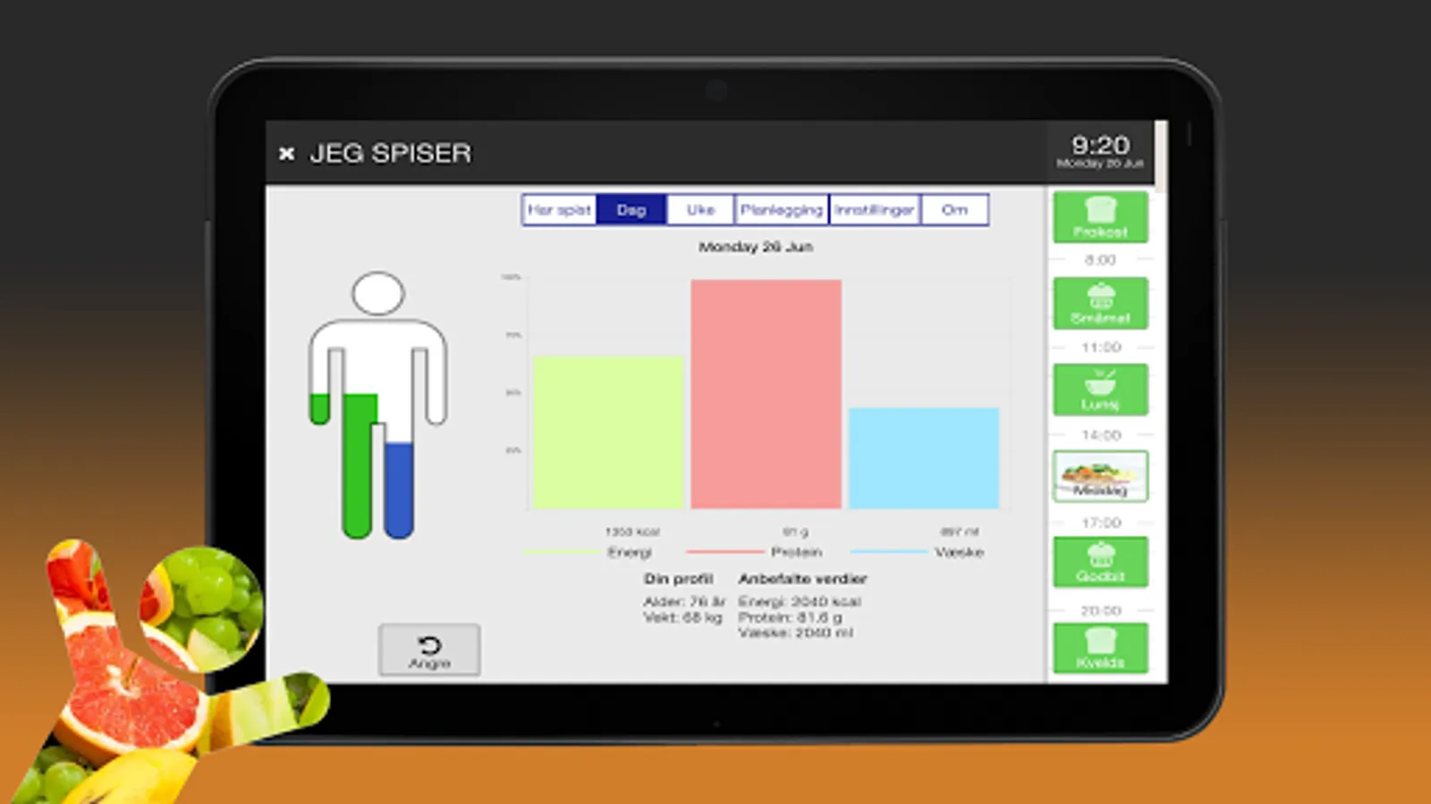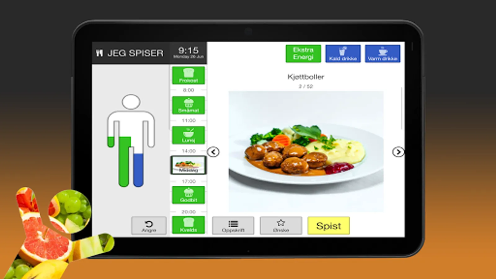 APPetitus is a tool for selection and registration of food, drink and energy enrichment. Dishes are divided into the meals breakfast, lunch, dinner, supper and various small and snack meals. The app visualizes nutritional intake, the ability to plan or create to-do lists, and some support for social interaction. The goal is to contribute to inspiration, encouragement, orientation and organization to prevent nutritional problems. The interplay between appetizing and sensory-stimulating dishes with adequate energy intake, structuring the meal, overview and nutritional value in what has been registered, and the opportunity for digital presence and interaction with others is central.