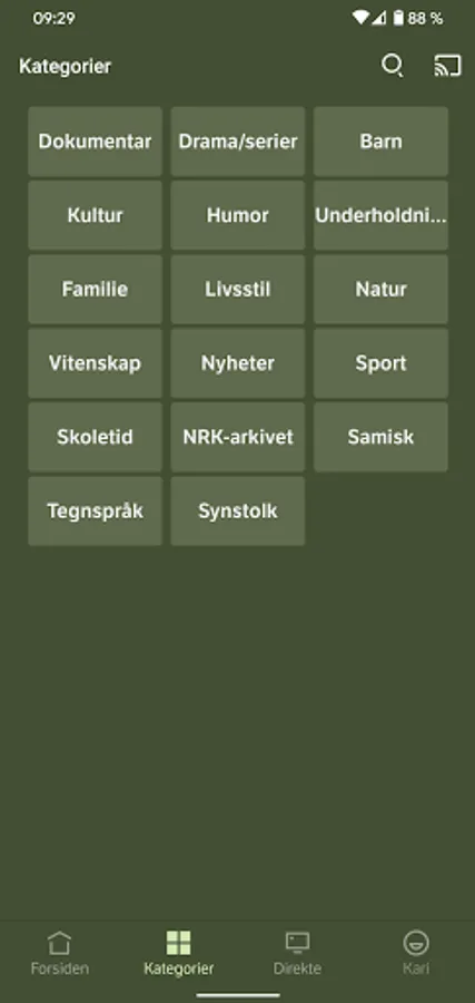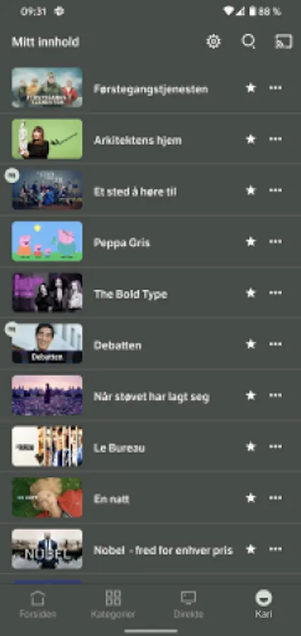 See NRK's entire large selection of series, documentaries, entertainment, films, sports and news. There are also separate categories for children and families with content that everyone will enjoy.