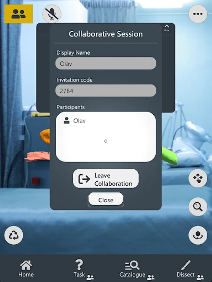 Collaborative multi-user mode in which multiple learners, tutors or teachers synchronously interact with the 3D model. The collaborative mode allows multiple users to connect to each other through a system of rooms protected by secret codes. In the collaborative model, the users can use voice chat and other synchronous collaboration features.