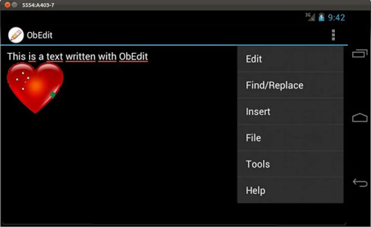 This editor has been made mainly to edit ObHealth exercise scripts. It has also proved handy to view files with extensions most applications will not show.