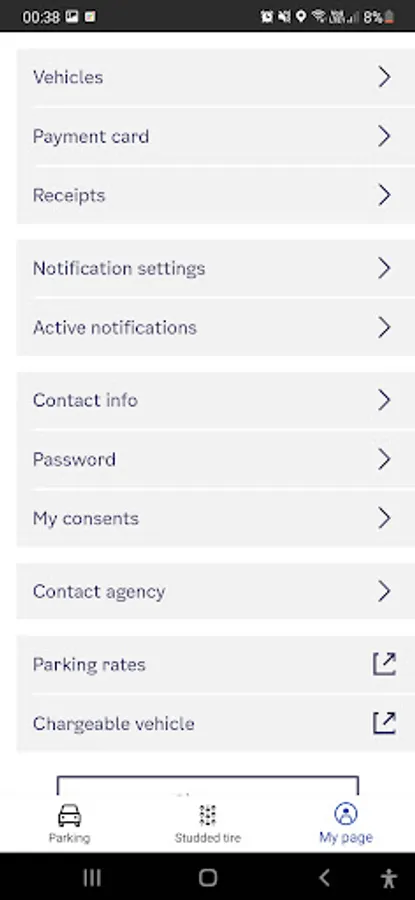 You create a profile in the app and among other information, store your payment card and vehicle registration number so you can effectively perform parking transactions and pay the studded tire fee. You can also enter multiple payment cards and vehicles and easily switch between them. Another feature includes receipt by e-mail which is sent from the transaction history. A monthly summary of earlier receipts can be received on e-mail. You can also contact The Agency for Urban Environment directly from the app.