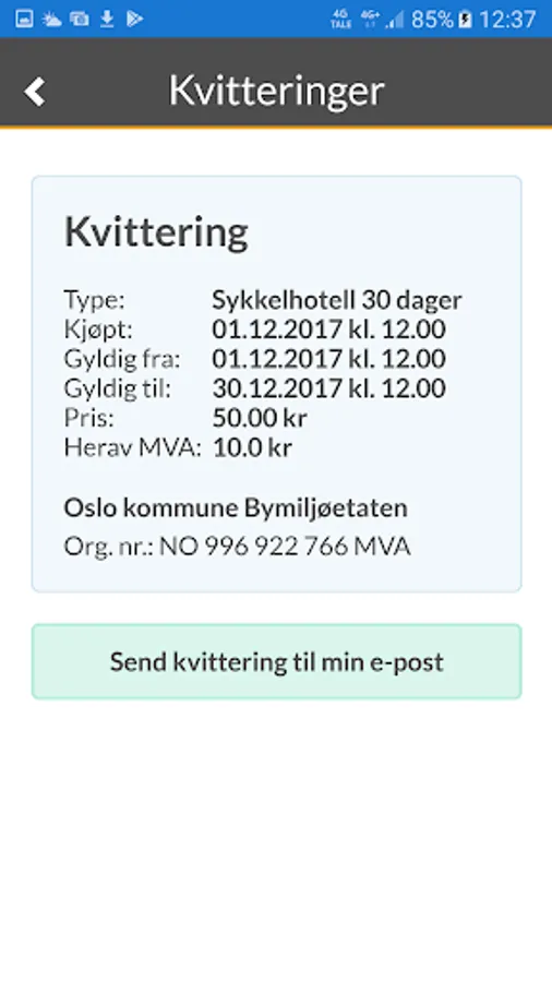 To gain access, you create a profile and register your credit card. After entered into an agreement and registered payment, select the desired bike in map or list. Then select "UNLOCK" to open the door. Access to bike in Oslo NOK 50 for 30 days.