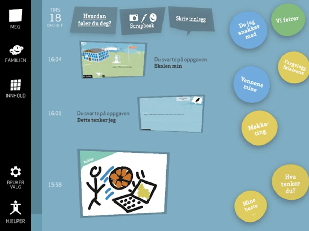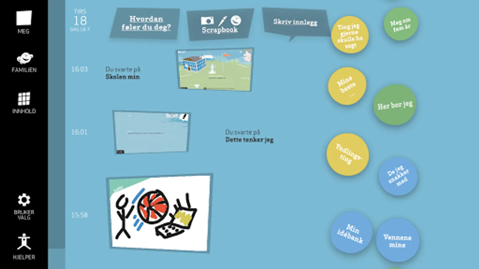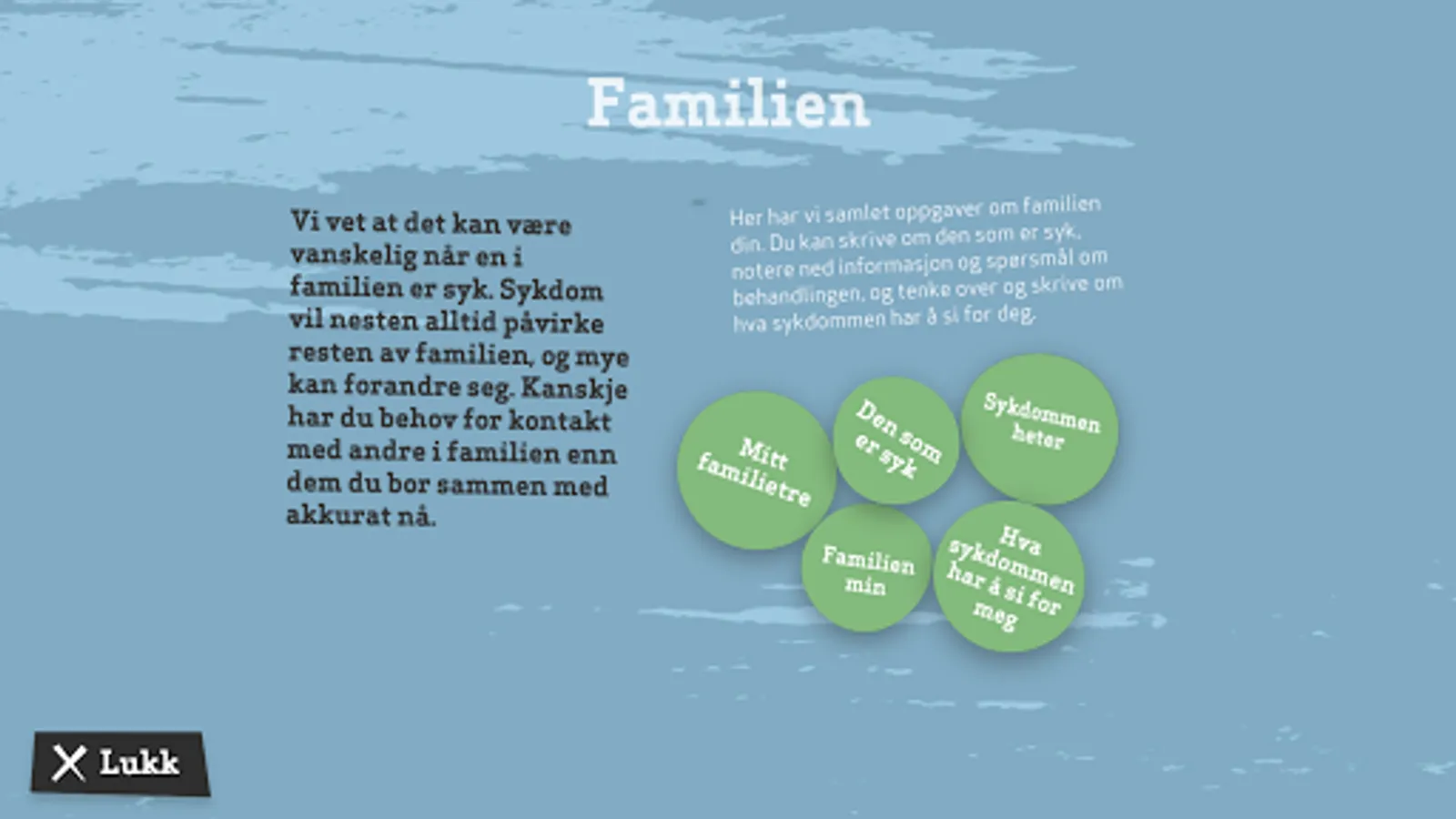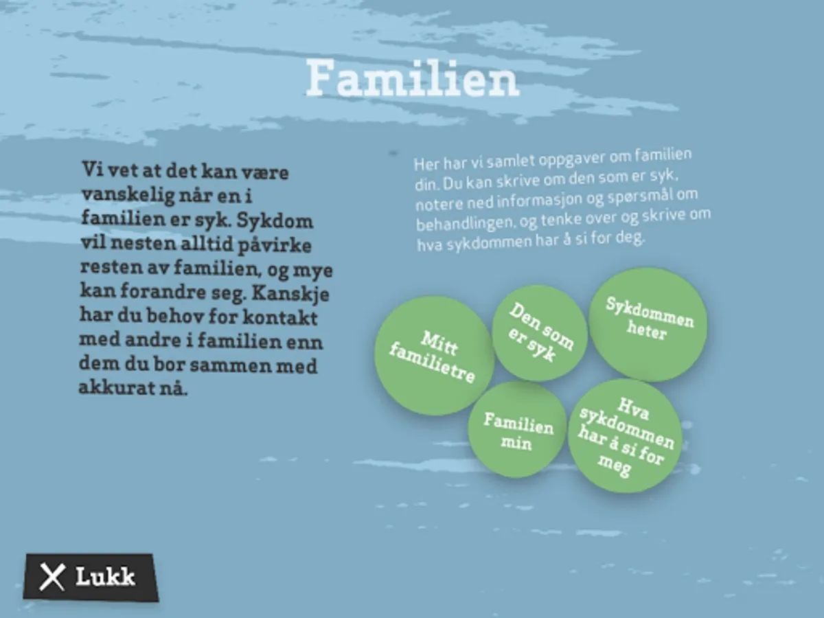 The app "Me too" is intended for children and adolescents who experience illness in close family or circle of friends. It aims to help young people cope with the difficult situation it can be, being young and caring. The app is developed in close dialogue with children and youth who have been relatives themselves.