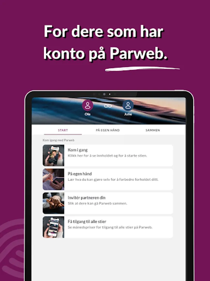 Parweb consists of Relationship Paths with instructional videos for conversations and exercises that you implement yourself.