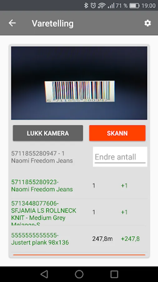 The app works alone with a phone with camera. For shops with large stock recommends PCK AS to connect a scanner to the phone. Whether via USB or Bluetooth. Shops, warehouses and manufacturing companies that count stock regularly, PCK AS to purchase a count terminal with Android OS. Questions about which solution fits your business, please contact your dealer of PCK AS's products.