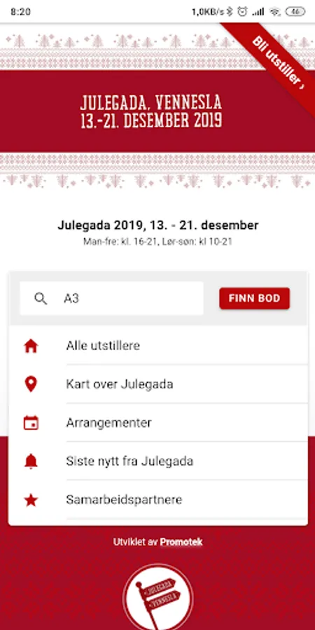 From 13 to 20 December, pedestrian streets in Vennesla will be filled with stalls and exhibitors from Norway and abroad. There will be concerts and events every day. With the Julegada app you get an overview of what's happening!