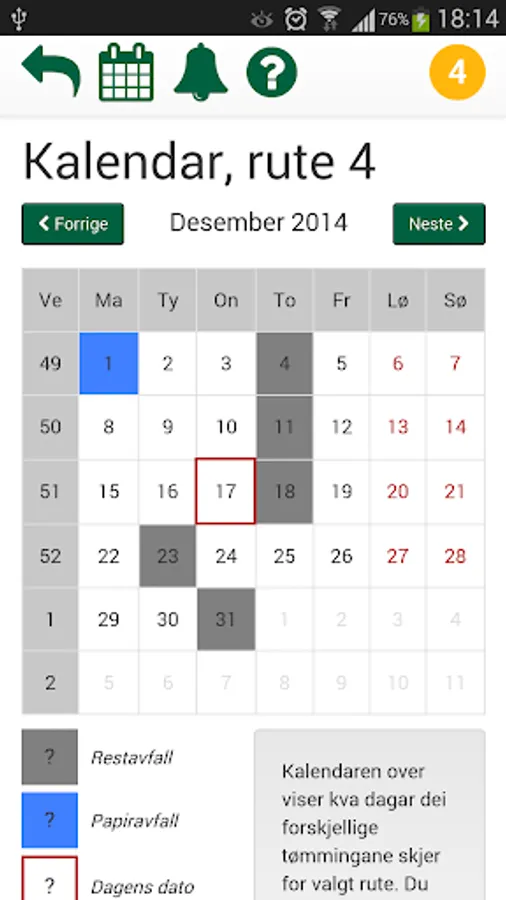 App for those who must submit his keg on tømedagen. This application is meint acting as a tool for hugs what day you should spin up your keg.