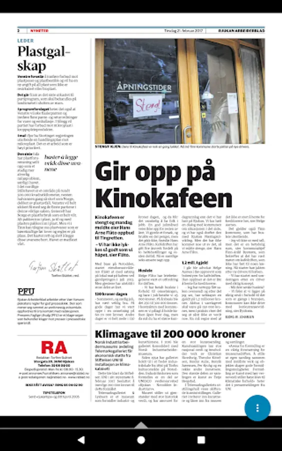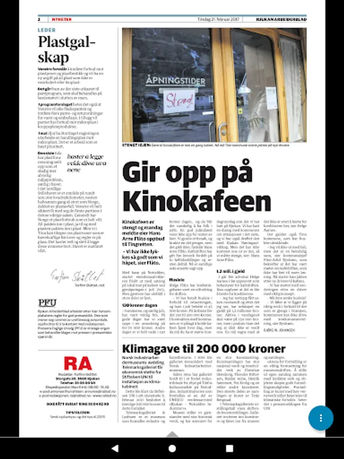 Thank you for reading Rjukan Arbeiderblad through the channels that may best suit you at all times.