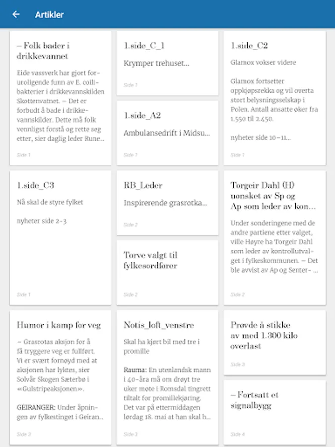 - Ability to scroll through the pages, zoom in on photos and articles, list all articles