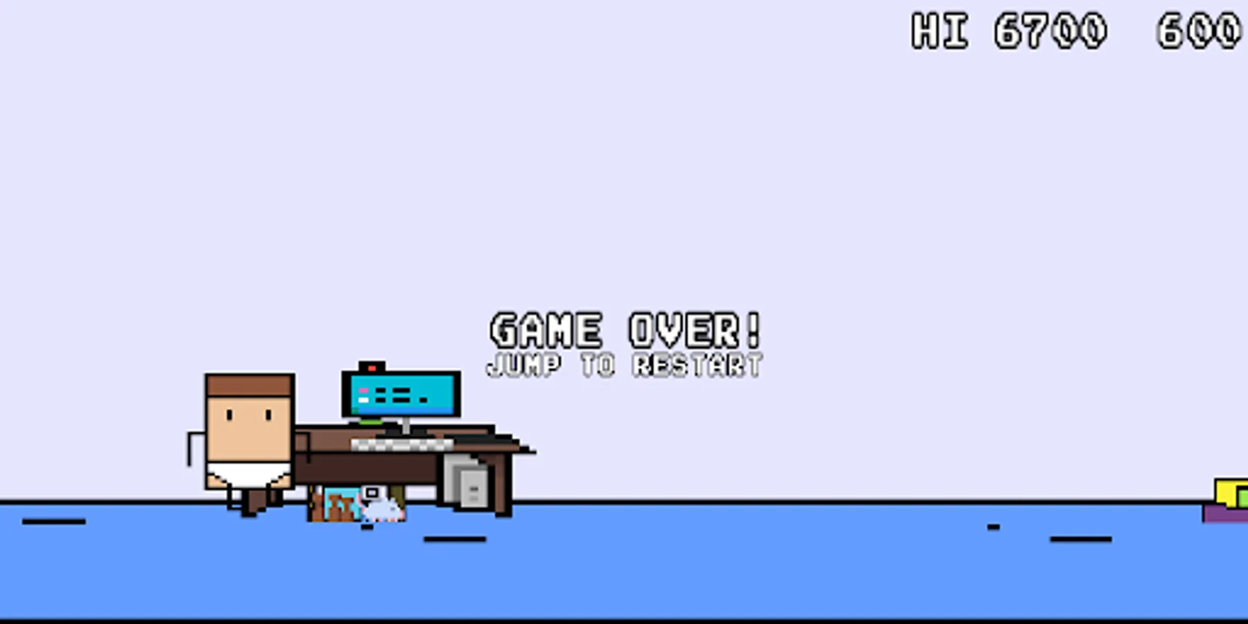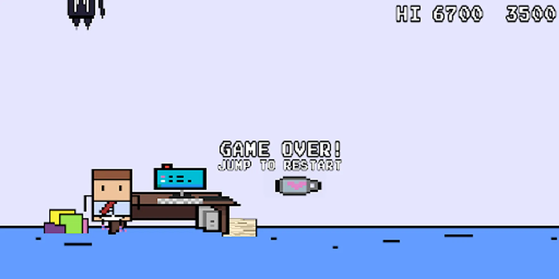 This is a 2D endless runner. You roll out of bed, in only your underpants, when you run you progressively find your clothes, while jumping and dodging stuff in your messy apartment. When you "die" you go to work in whatever clothes you managed to find. Can you make it to work (home office) fully clothed??