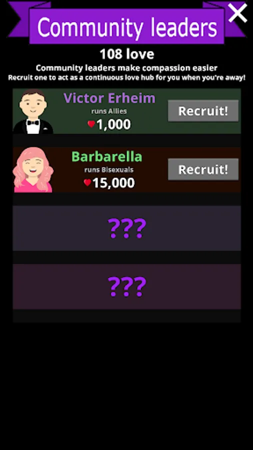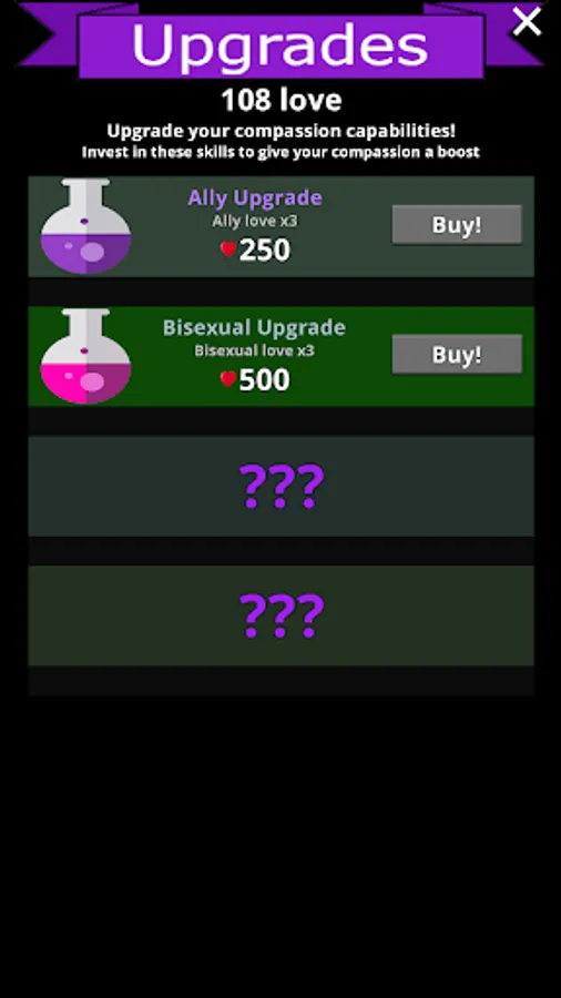 Love Entity is a love-themed incremental game. The player manages the incremental gains of love by clicking and taking care of other various assets to earn as much love as possible. Ascension points give the player the option to begin anew with a bonus further increasing accumulation of love.