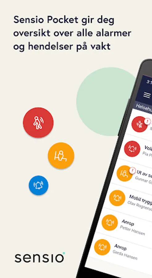 Away with the arsenal of alarm receivers and guard phones. With Sensio Pocket, employees in the health and care service get access to all relevant functions on the same handheld device.