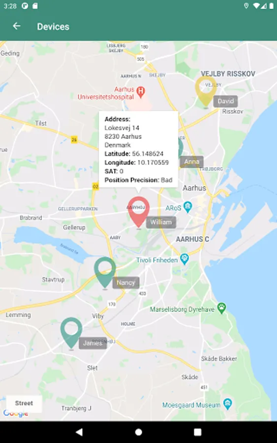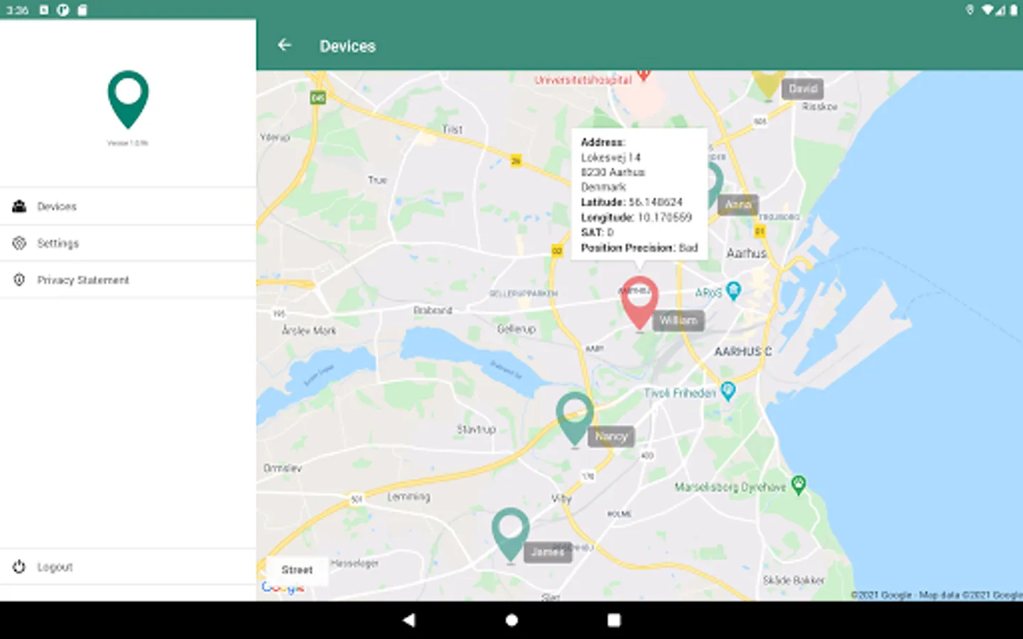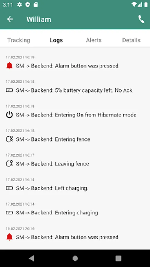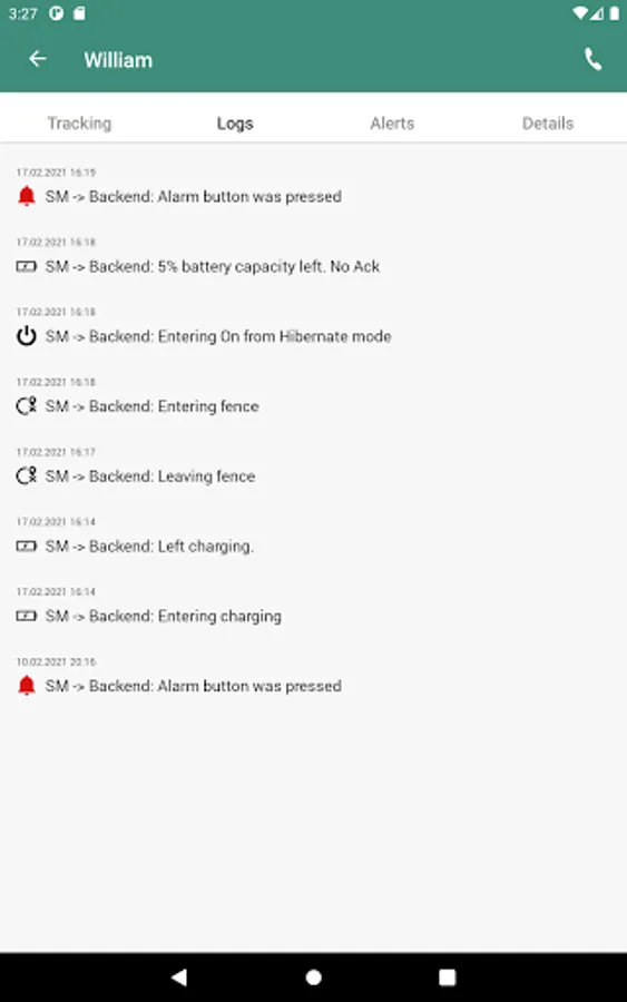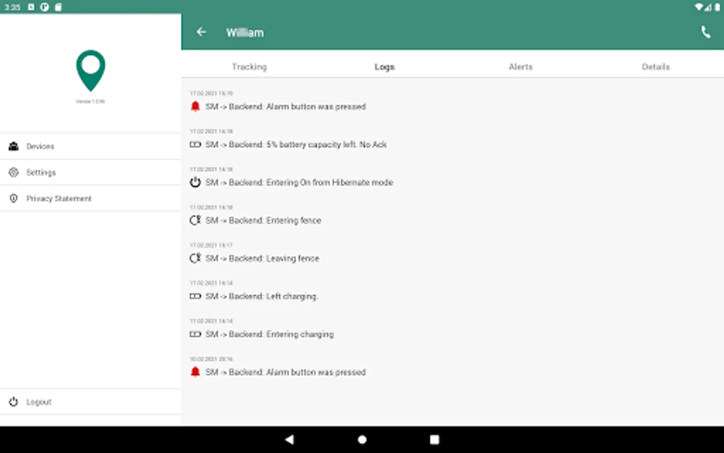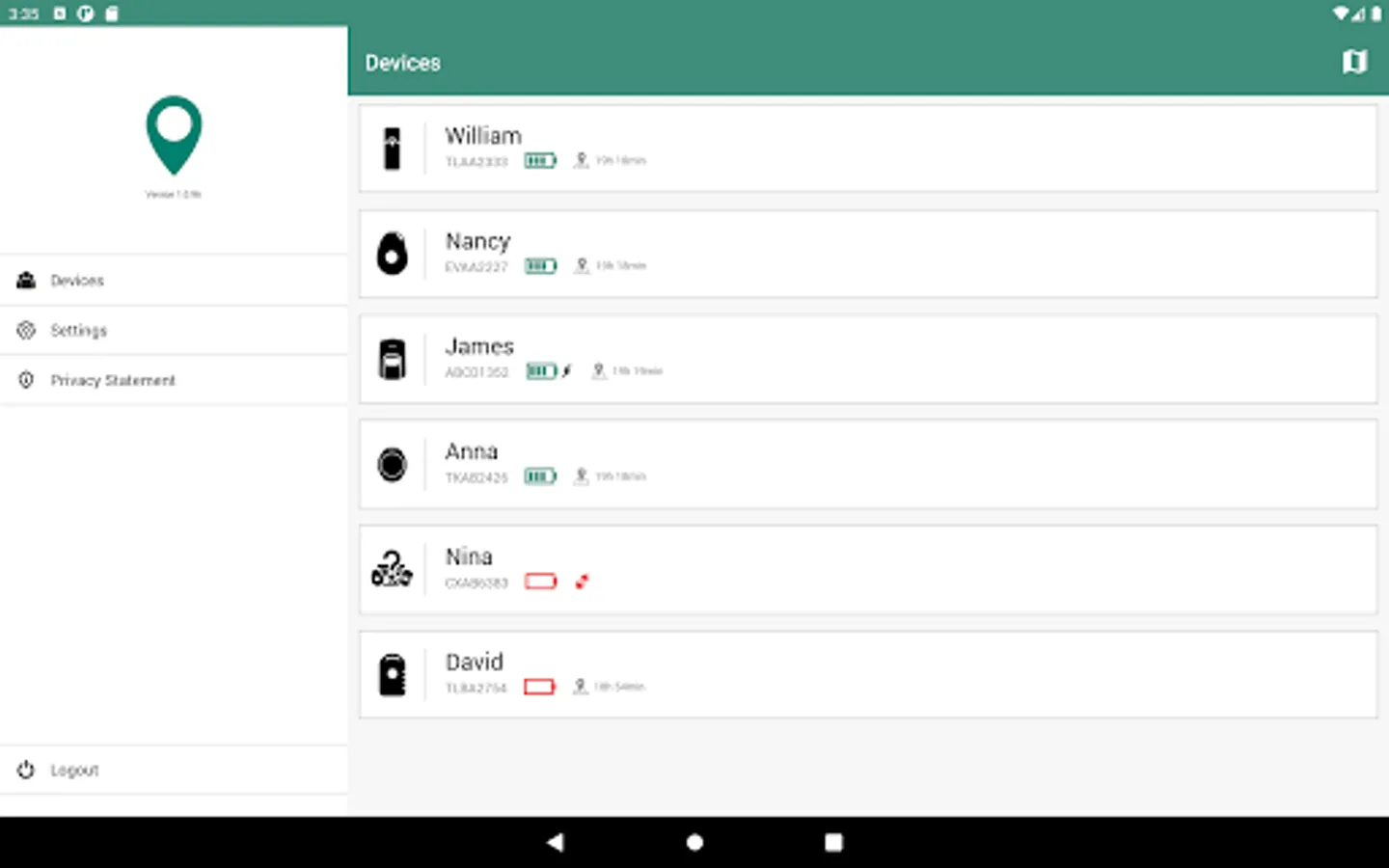 Location of people with a map view of current position. Real-time alarms and status update on tracking devices.