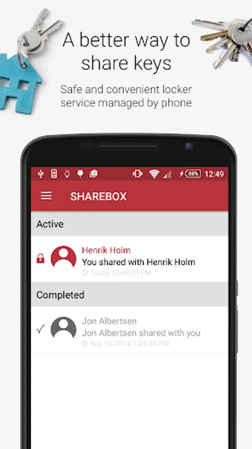 Sharebox is a storage cabinet that ensures a fast and secure exchange of keys. All functionality is controlled via the Sharebox app. Here you can rent a box, open and lock and share access with one or more.