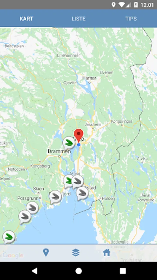 The map tells you where the nearest destination is. You can navigate around the map and find alerts from all the destinations along Norway's coastal strip. Pressing one of the measurements will give you detailed information about the individual alert.