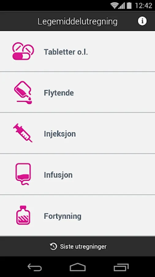 The app "Legemiddelutregning" is a practical tool and aid for health professionals. "Legemiddelutregning" is based on the dosage form (injection, infusion, tablets / capsules etc.) and guides the user step by step to the correct answer.