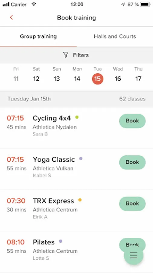 • Booking of group training classes, halls and courts at SiO Athletica's clubs