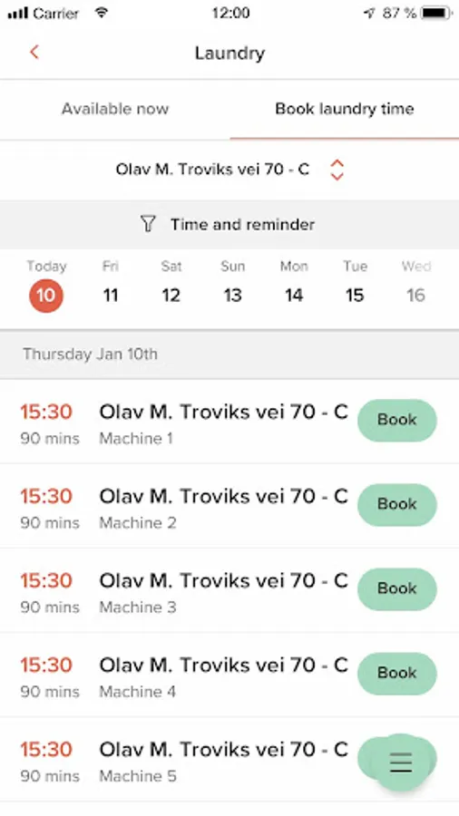 • Booking of laundry time for those who live in student accommodation