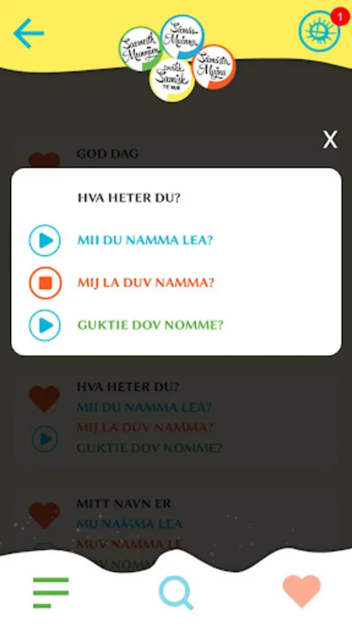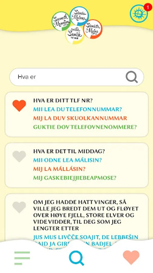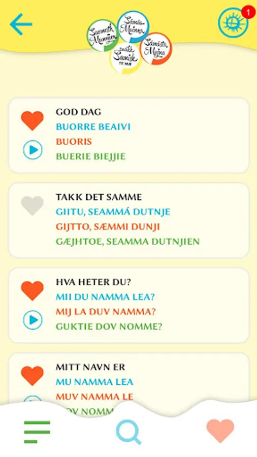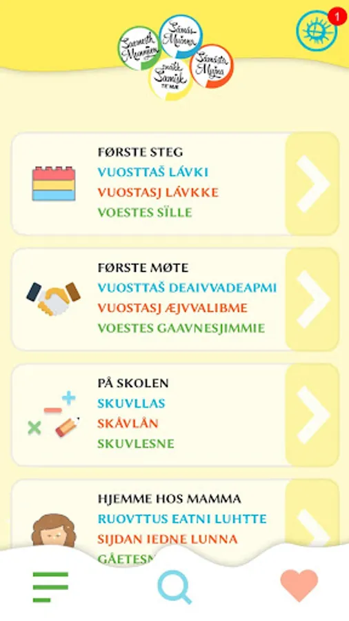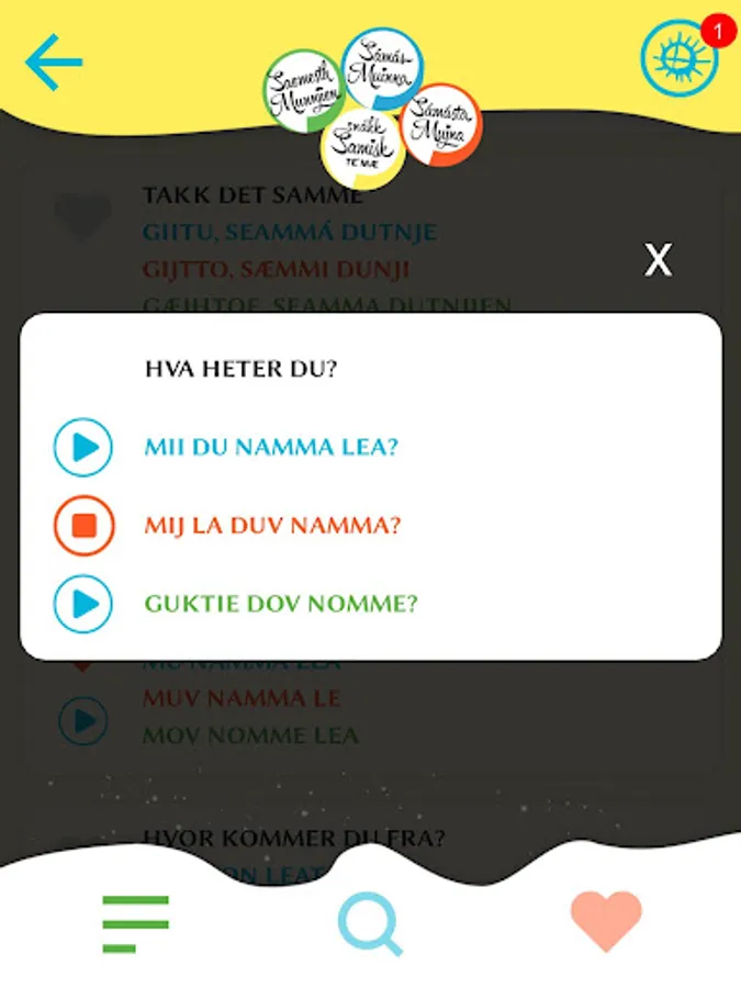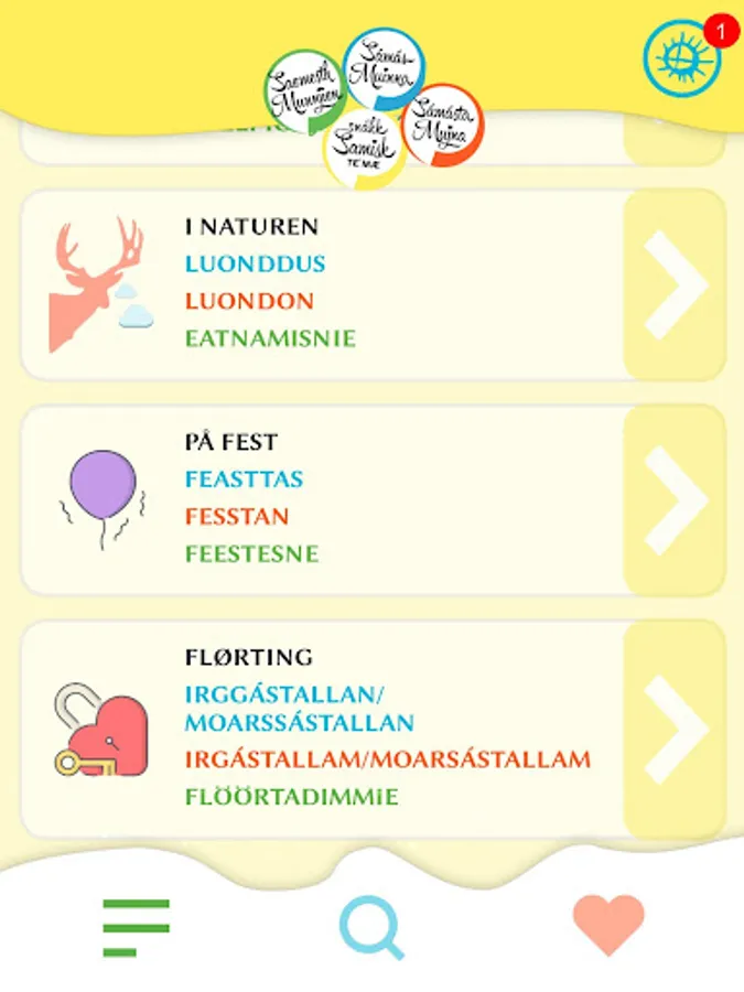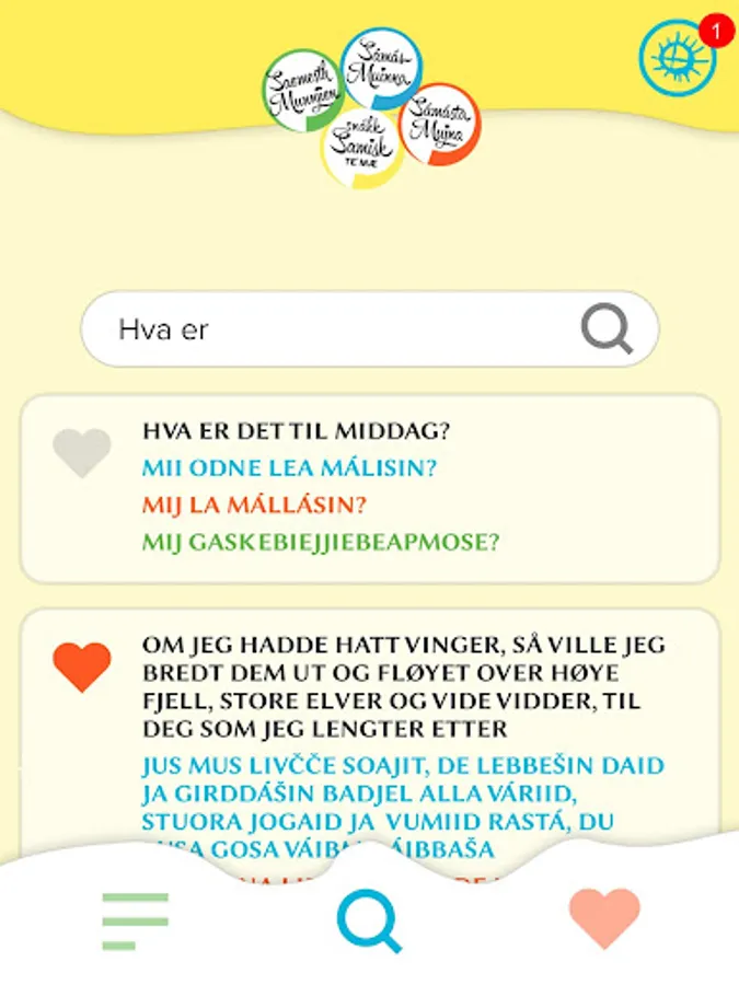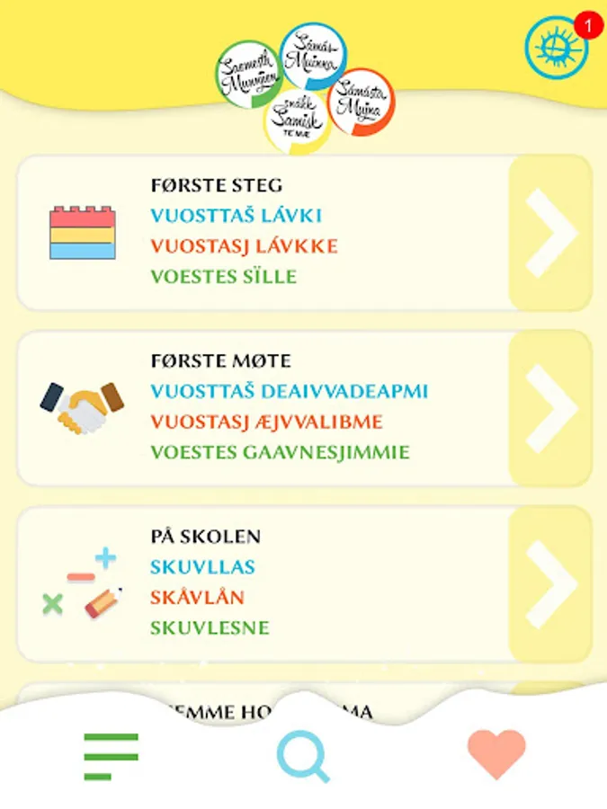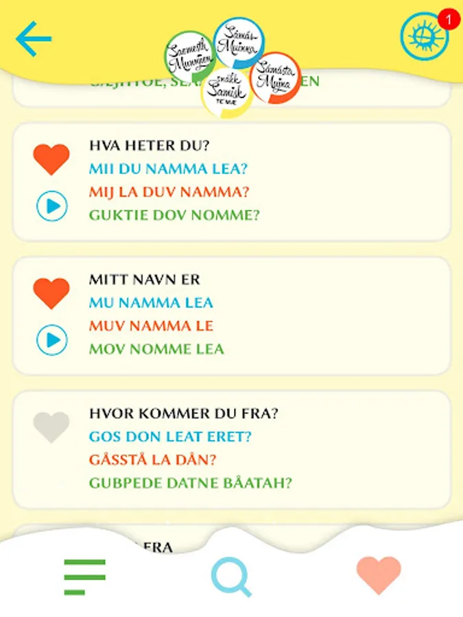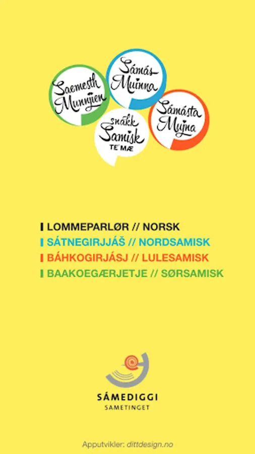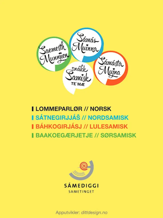 This 'phrasebook' is intended to be an attractive invitation to speak Sámi at first encounters, routinely and at celebrations. The app involves no complicated grammar and is limited to more or less useful phrases. Feel free to jump right in! The phrasebook was made in connection with the campaign "Speak Sámi to me!"