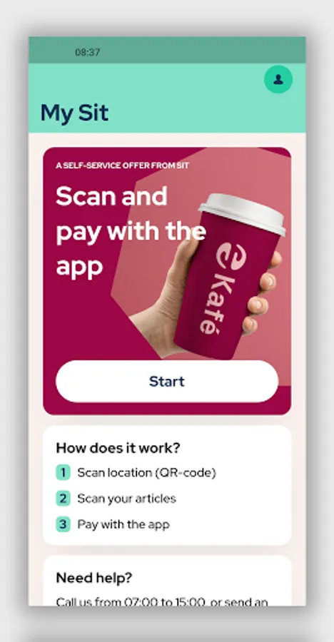 Download and use the app to pay for food and drink at selected self-service salespoints.