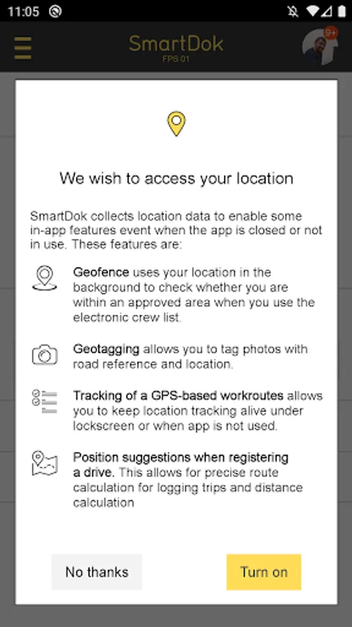 SmartDok is an application for the contractor business. You will need a license to be able to use this App. In this app you can register: manhours, machinehours, material consumption, fill out checklist, send pictures, sending complaints to Byggmakker and much more.