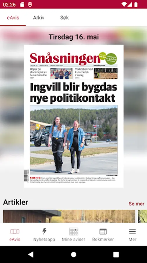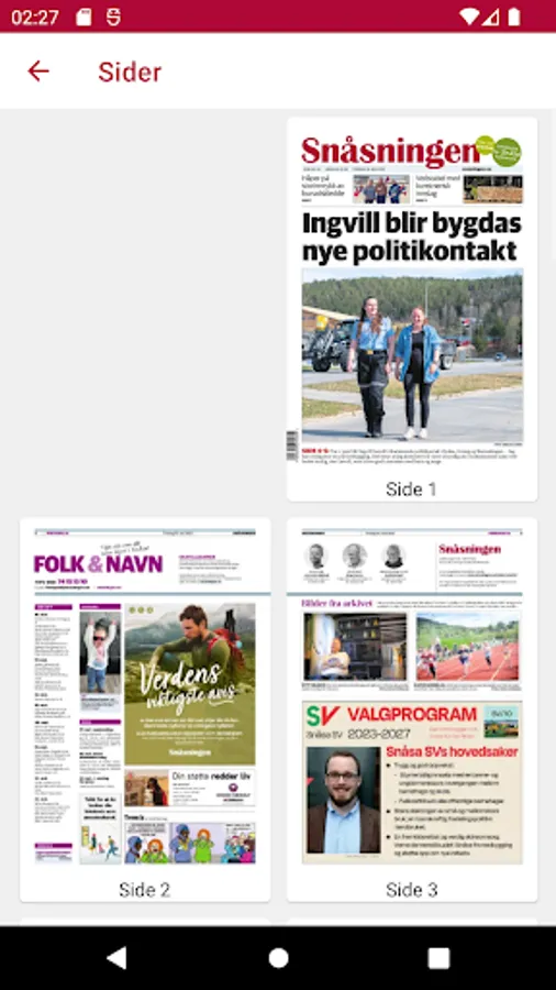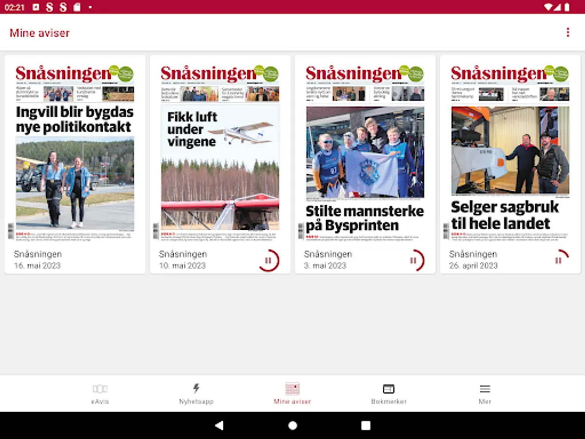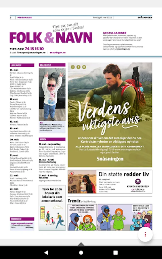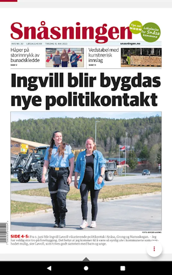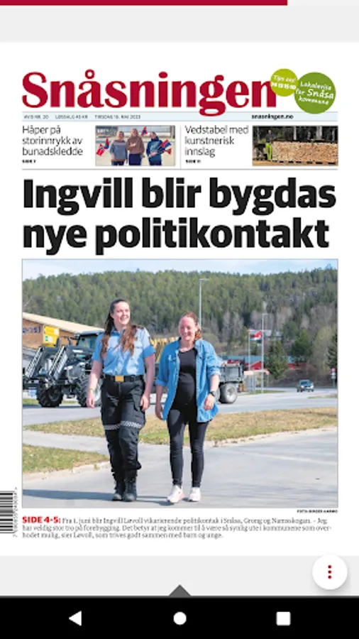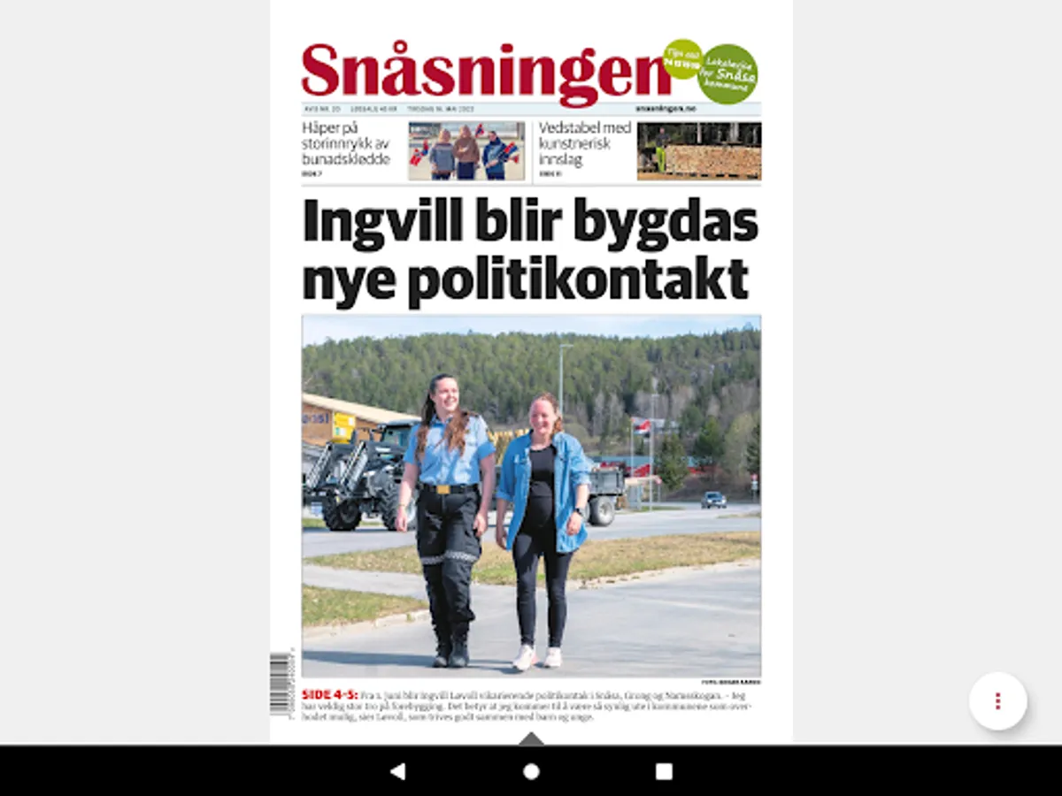 With Snåsningen ePaper you can download the print edition in a format that is adapted to your Android device.