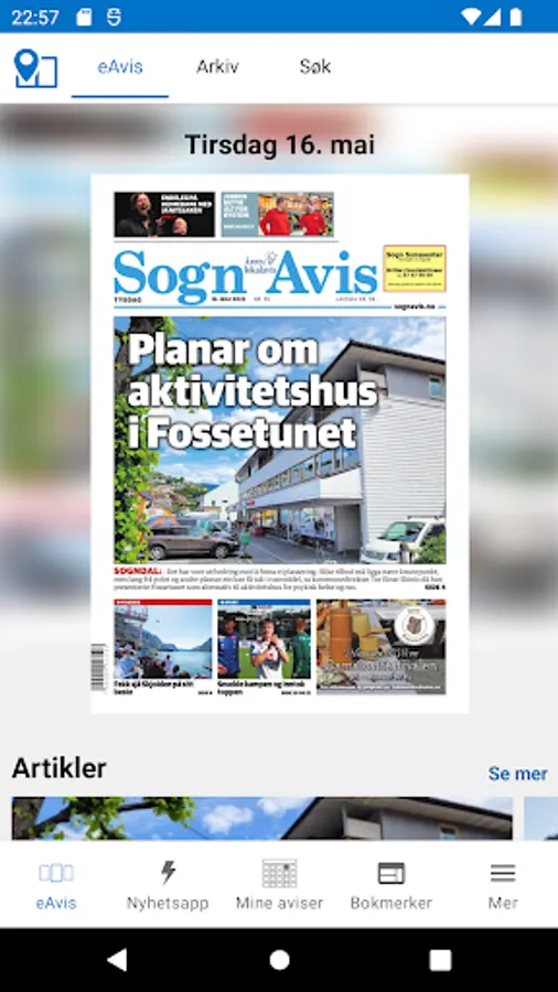 Download the app and access to read the full paper edition of Sogn Avis. You can buy individual copies of paper newspapers directly in the app every day. If you have a subscription, you can log in and read the newspaper every day, no matter where you are!