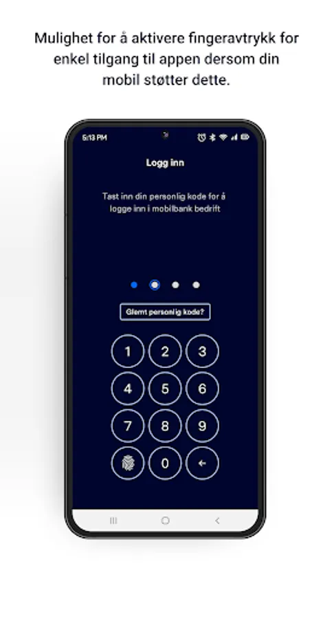 Once you have downloaded the app, you must register and identify yourself with BankID or BankID on Mobile. During activation, you set a 4-digit personal code that can be used for logging in and signing payments. If your phone supports fingerprints, you can also activate this, and thus use Fingerprints instead of your personal code. Login and payment will be easier.