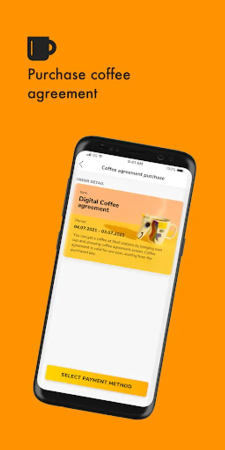 • Coffee agreement on mobile – add or buy a coffee agreement directly in the app, valid for 365 days.