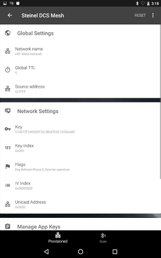The STEINEL DCS™ Mesh App that allows the STEINEL DCS™ devices to be paired together using Bluetooth MESH network topology. Once paired, several commands and settings can be transmitted wirelessly among the devices. The key features of the mesh app include: