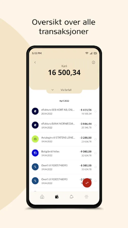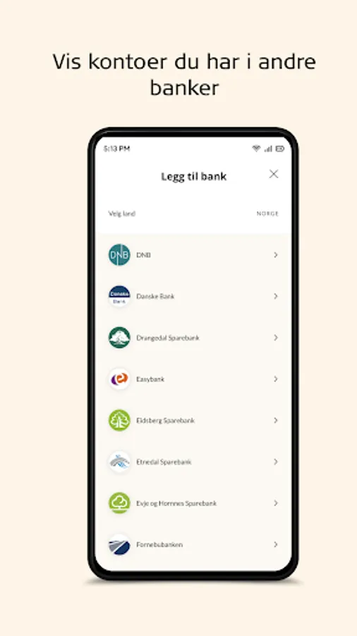 • See all the accounts you have at your disposal in one and the same overview, also accounts from other banks