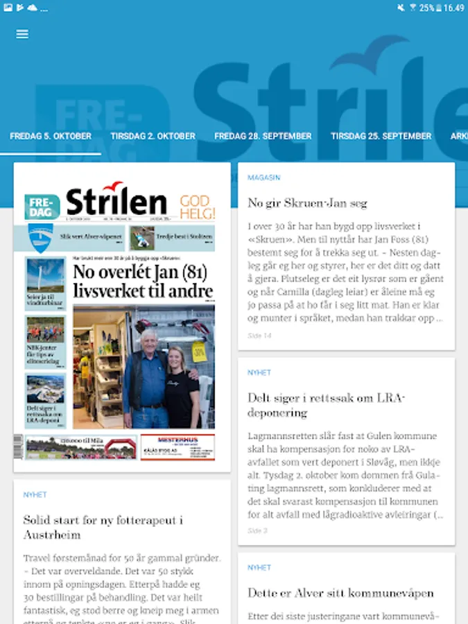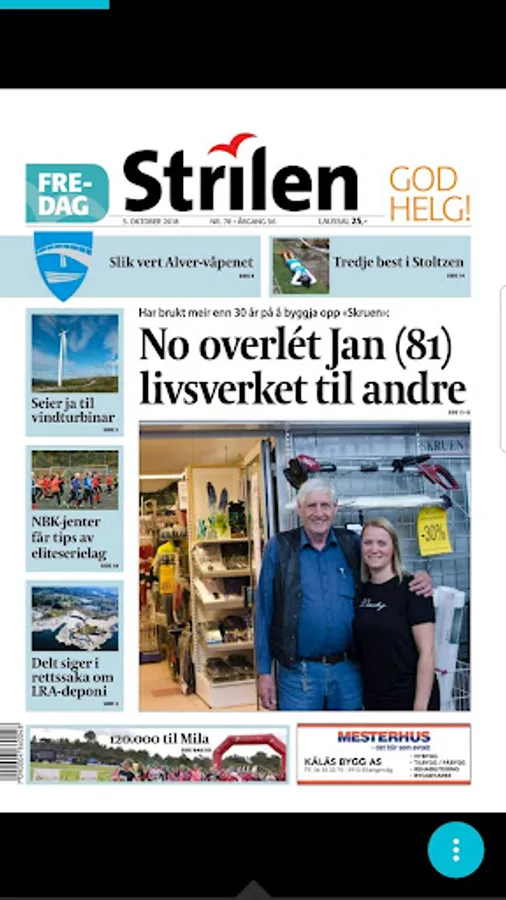 Strilen ePaper is our newspaper in readable digital format. She comes out each Tuesday, Thursday and Saturday, and to give the best overview of what happens in Nordhordland of large and small news!.